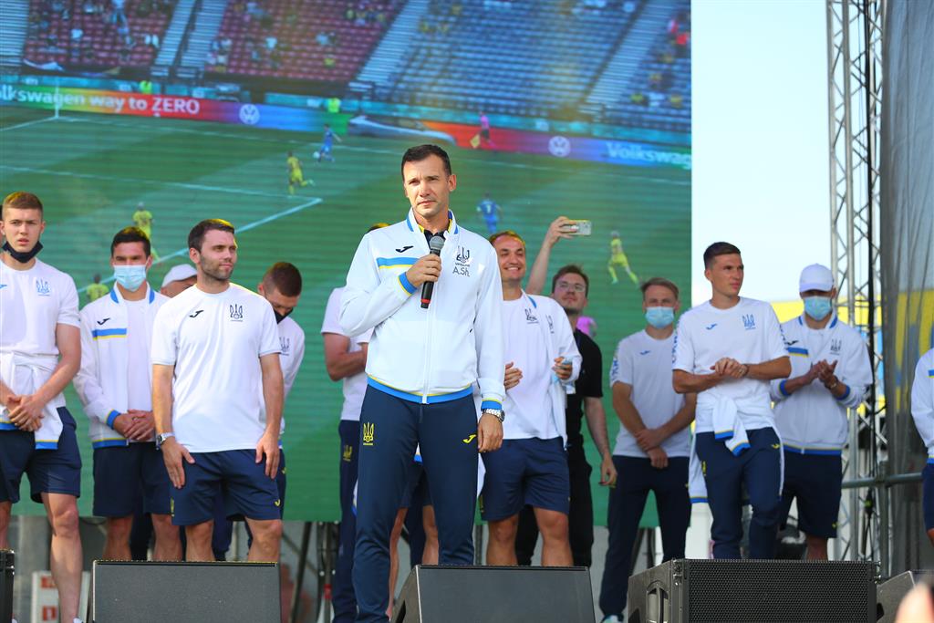 Головний тренер збірної Андрій Шевченко подякував вболівальникам за підтримку та теплу зустріч, а своїм підопічним — за самовідданість та характер. "Я вдячний вам за таку підтримку! Це було дуже важливо, коли ми виходили на ігри. Дякуємо всім, хто приїхав підтримати команду. Дякуємо всім, хто вболівав в Україні. Ми бачили та відчували вашу підтримку. Я хочу подякувати хлопцям за самовіддачу, бажання та футбол, які вони показали", — сказав Шевченко.