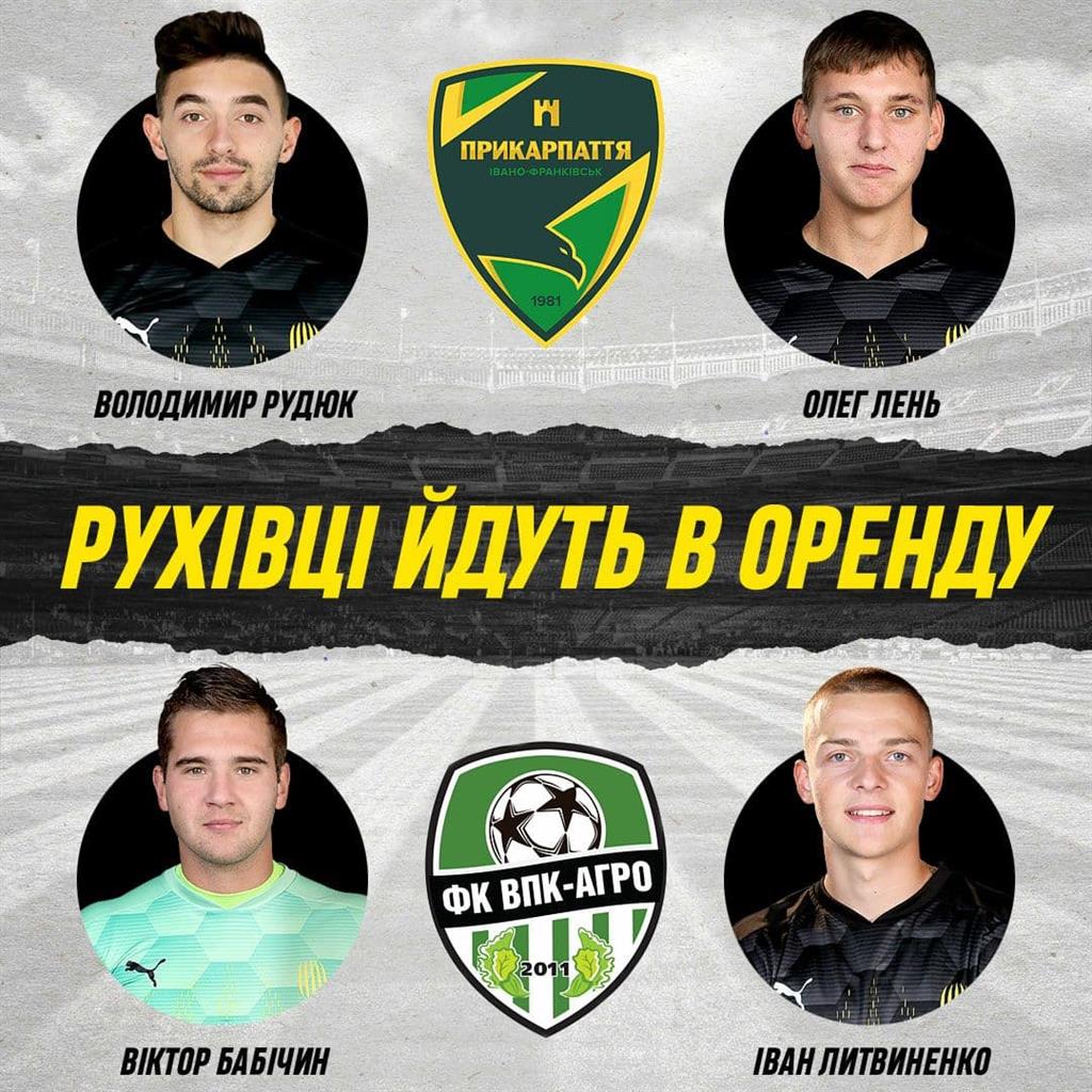 Виктор Бабичин и Иван Литвиненко отправятся в аренду в ВПК-Агро, а Владимир Рудюк и Олег Лень — в Прикарпатье.
