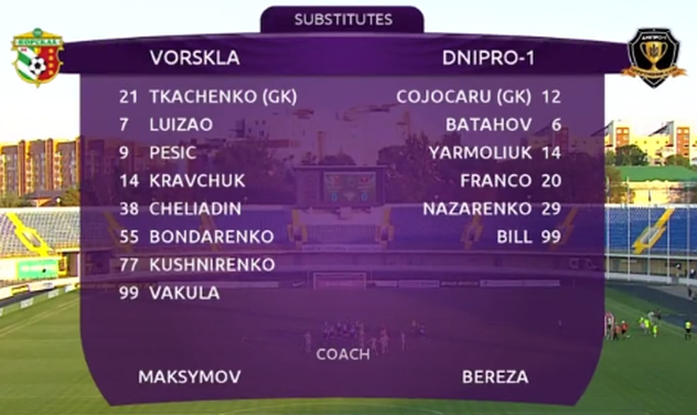 Бросилась в глаза короткая скамейка запасных Днепра-1. В заявке на матч было всего семнадцать футболистов. Особого выбора для внесения коррективов по ходу матча у Игора Йовичевича не было, особенно, учитывая последующее удаление Логинова.