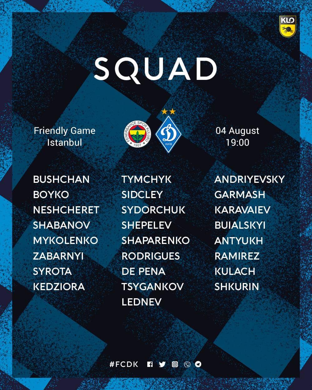 Матч Фенербахче — Динамо состоится в среду, 4 августа. Начало в 19:00. Будет доступна прямая видео-трансляция поединка.