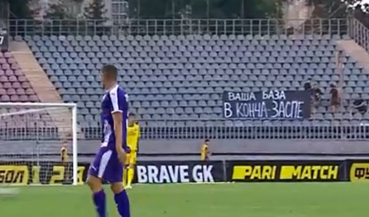 На секторе болельщиков можно увидеть баннер с фразой: "Ваша база в Конча-Заспе".