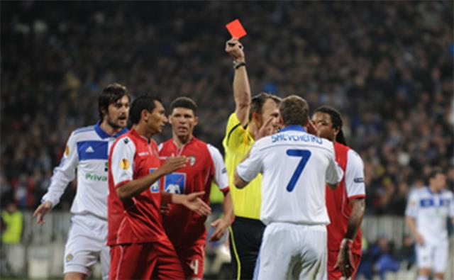 После столь убедительной победы над главным фаворитом турнира, казалось бы, и о победе в Лиге Европы не грех подумать, однако уже в следующем раунде Динамо и Андрея Шевченко в частности, ждало горькое разочарование. На первый, домашний матч с Брагой, Сёмин выпустил в основе Артёма Кравца, рассчитывая на его скорость и голевое чутьё. Шевченко же вышел на поле лишь после перерыва. Однако, уже спустя 17 минут, Шева увидел перед собой красную карточку. За столь короткое время форвард успел получить жёлтую в игровом эпизоде и вторую жёлтую, за удар, после свистка арбитра…