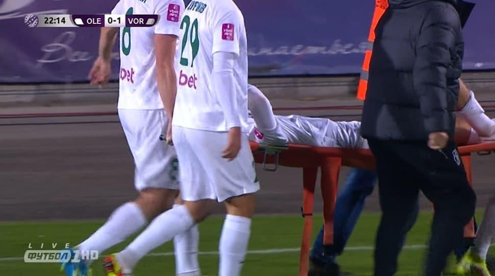 Из-за полученного ужасного повреждения футболист не смог продолжить встречу, покинув поле на носилках.