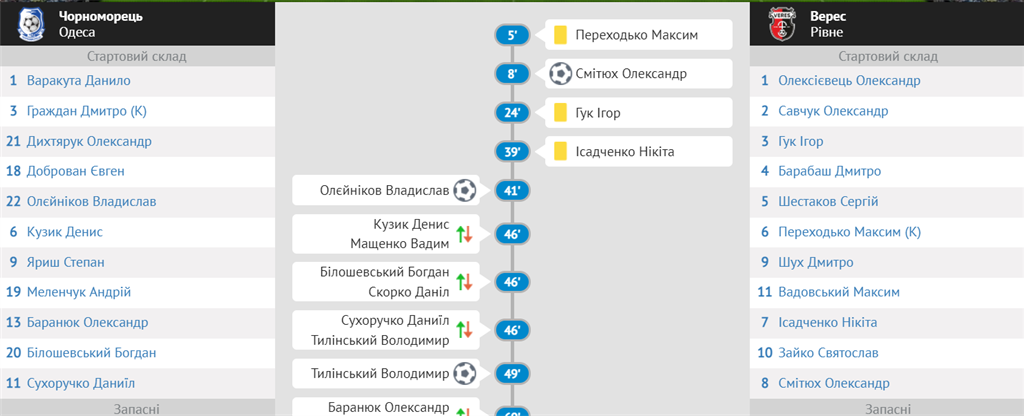 Из-за дисквалификации вратаря ровенской команды в 10 туре Назара Мыгаля, ворота против одесситов вынужден был защищать полевой игрок — защитник Александр Алексеевец.