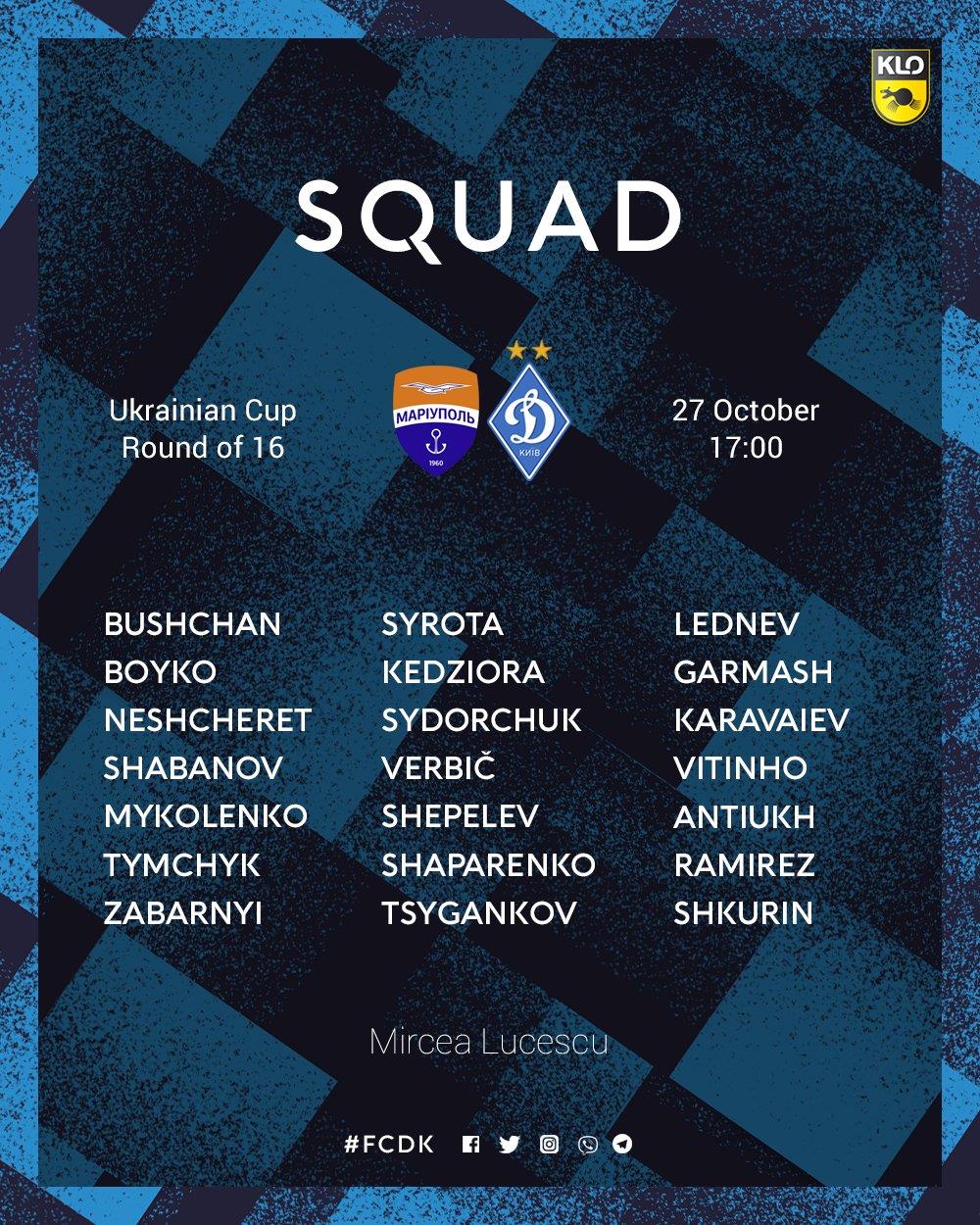 Накануне поединка, чемпион Украины объявил заявку на матч. В список футболистов, которые могут принять участие в матче попали 21 футболист основной обоймы команды Мирчи Луческу.