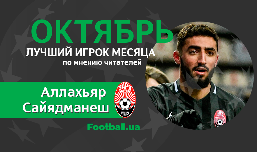 По итогу Аллахьяр Сайядманеш на финишной прямой немного обошел Артема Довбика и стал лучшим в октябре. За него проголосовало 378 читателей (28%), за Артема Довбика на 20 человек меньше – 358 (26,5%). Третье место в нашем голосовании занял динамовец Виктор Цыганков – 284 голоса (21%), четвертый – Тете, за бразильца проголосовали 203 человека (15%). Меньше всего голосов было отдано за форварда Ворсклы Рангела – 129 (9,5%).