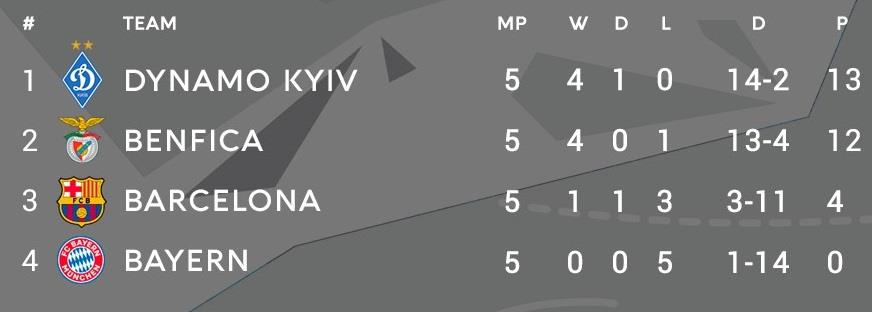 Благодаря этой победе киевляне сохранили первую строчку в турнирной таблице своей группы, однако судьба первого места определится 8 декабря в противостоянии с Бенфикой.