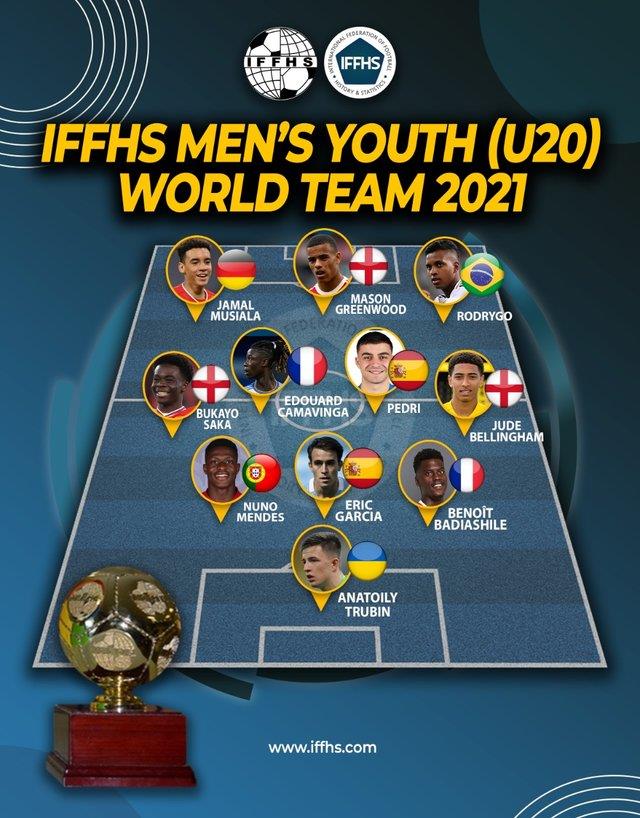 Международная федерация футбольной истории и статистики IFFHS опубликовала символическую сборную молодых футболистов до 20 лет.