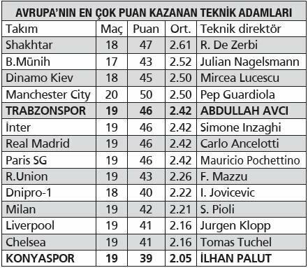 Турецкая газета Sabah представила рейтинг тренеров по показателю набранных очков в национальных чемпионатах по итогам первой половины нынешнего сезона.