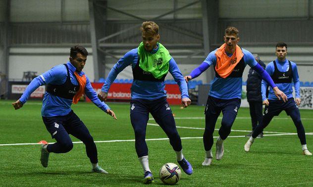 Дебютное занятие киевского Динамо в 2022 году проходило в два этапа: на открытом пространстве и в манеже, где уже куда больший акцент уделялся работе с мячом, игре в "Квадрат" и отработке завершения фланговых передач.