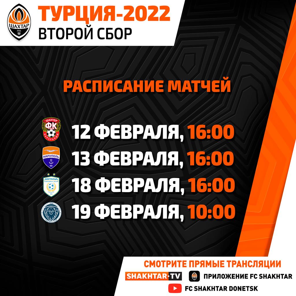 Донецкий Шахтер определился со спарринг-партнерами на втором тренировочном сборе в Турции.