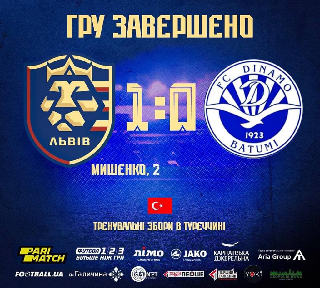 В рамках товарищеского матча за сборах в Турции Львов сумел переиграть Динамо из Батуми со счетом 1:0.