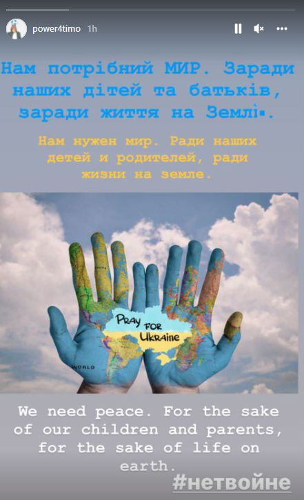 "Нам потрібен мир. Заради наших дітей та батьків, заради життя на землі", — написав гравець.