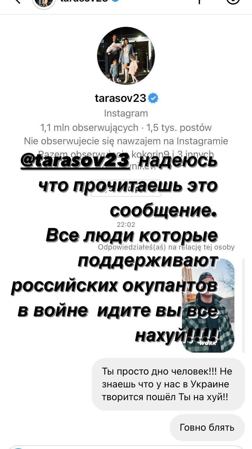 "Ти — дно людина. Не знаєш, що в нас коїться в Україні! Пішов ти нах*й! Лайно, бл*ть", — написав поляк росіянину.