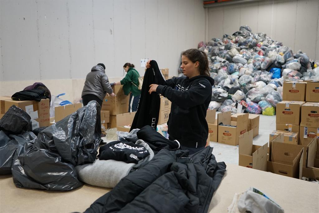 Ніколь разом з іншими гравчинями на складі пакують забрану допомогу до відправлення в Україну.