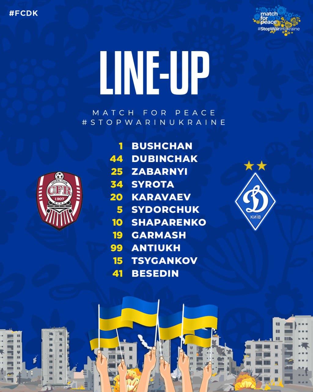 Повністю стартовий склад киян виглядає так: