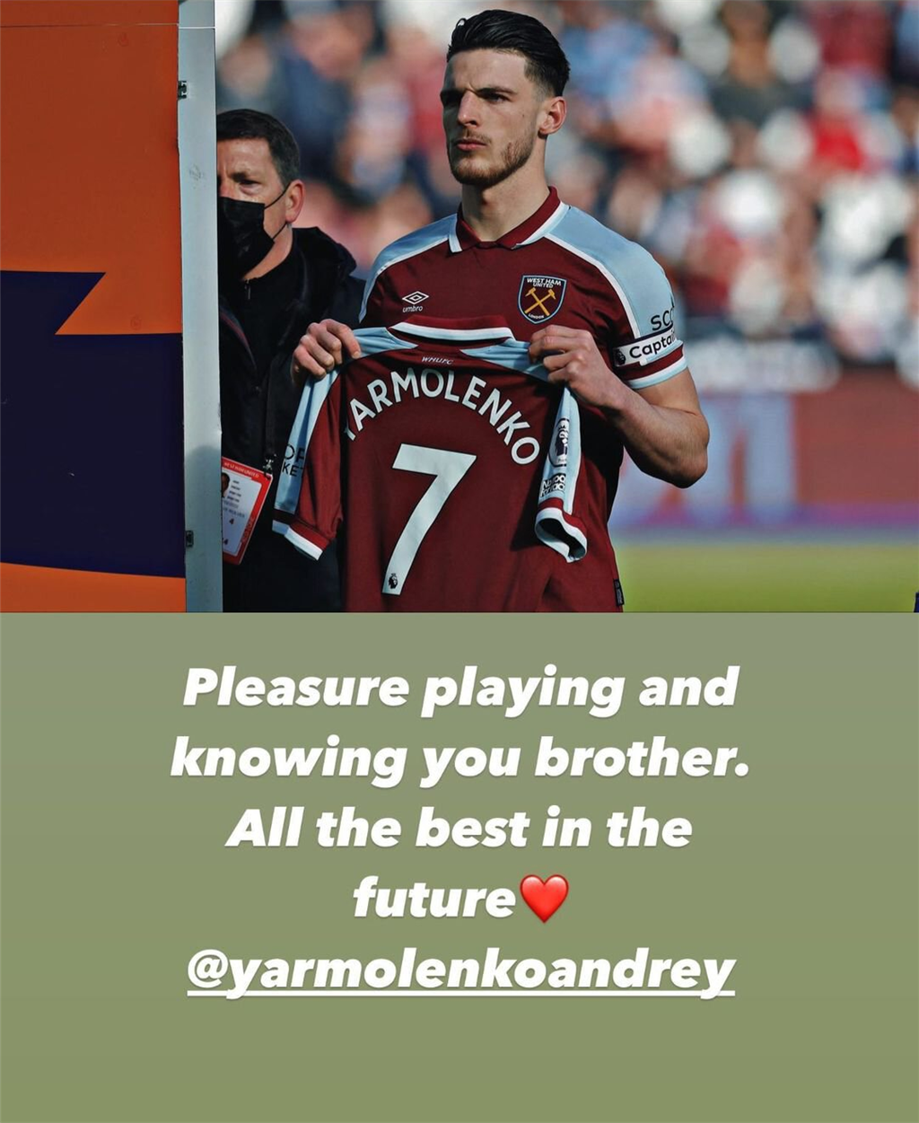 Півзахисник Вест Гема Деклан Райс попрощався з вінгером клубу Андрієм Ярмоленком, який отримав статус вільного агента.
