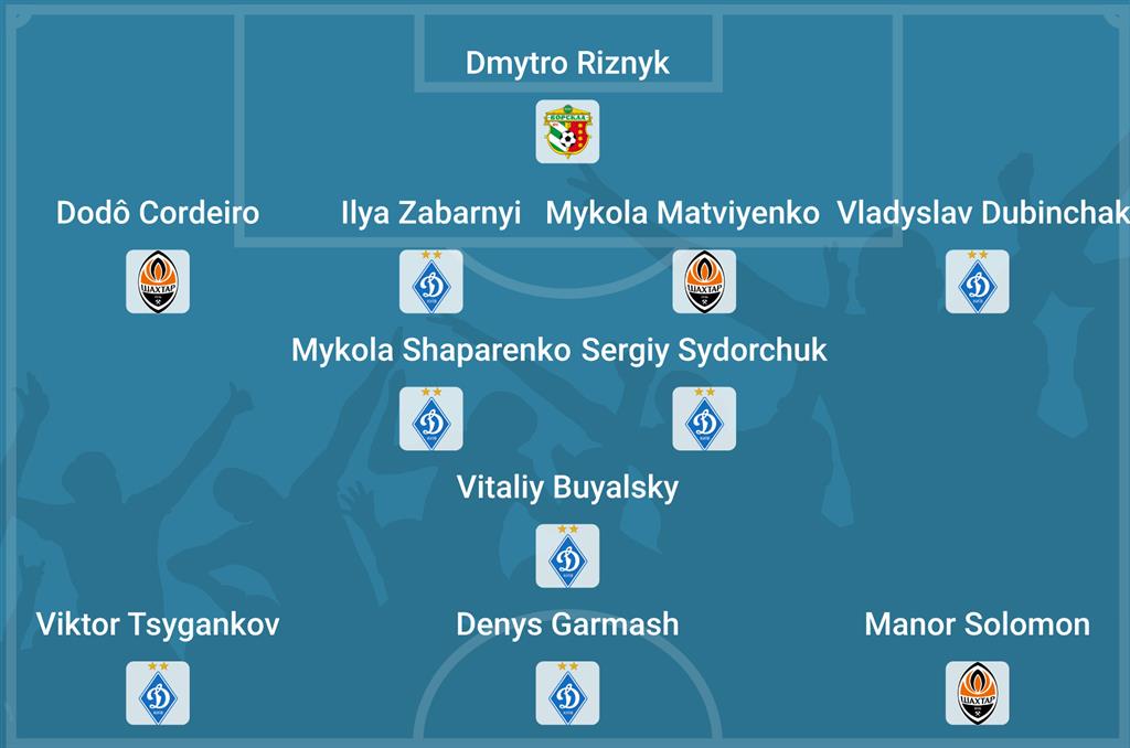 Захисники: Додо (Шахтар), Ілля Забарний (Динамо), Микола Матвієнко (Шахтар), Владислав Дубінчак (Дніпро-1/Динамо).