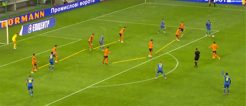 Володіючи м’ячем, обступивши штрафний майданчик суперника, в позиційних атаках українцям не вдавалося створити нічого загрозливого. Картина була ще більш сумна, ніж в матчі проти Уельсу. Там хоча б атаки завершувались небезпечними ударами по воротам, а тут нічого.