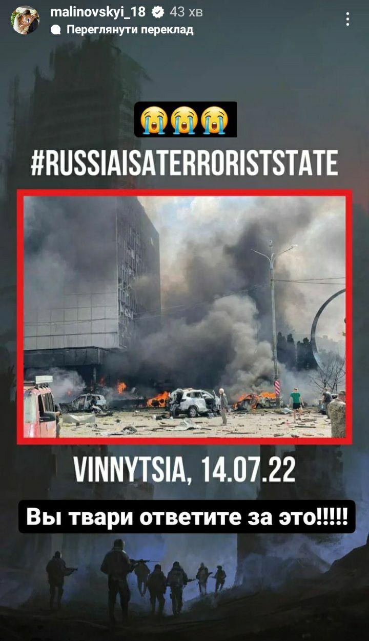 Півзахисник національної збірної України та італійської Аталанти Руслан Маліновський прокоментував сьогоднішнє влучання російських ракет по центру Вінниці.