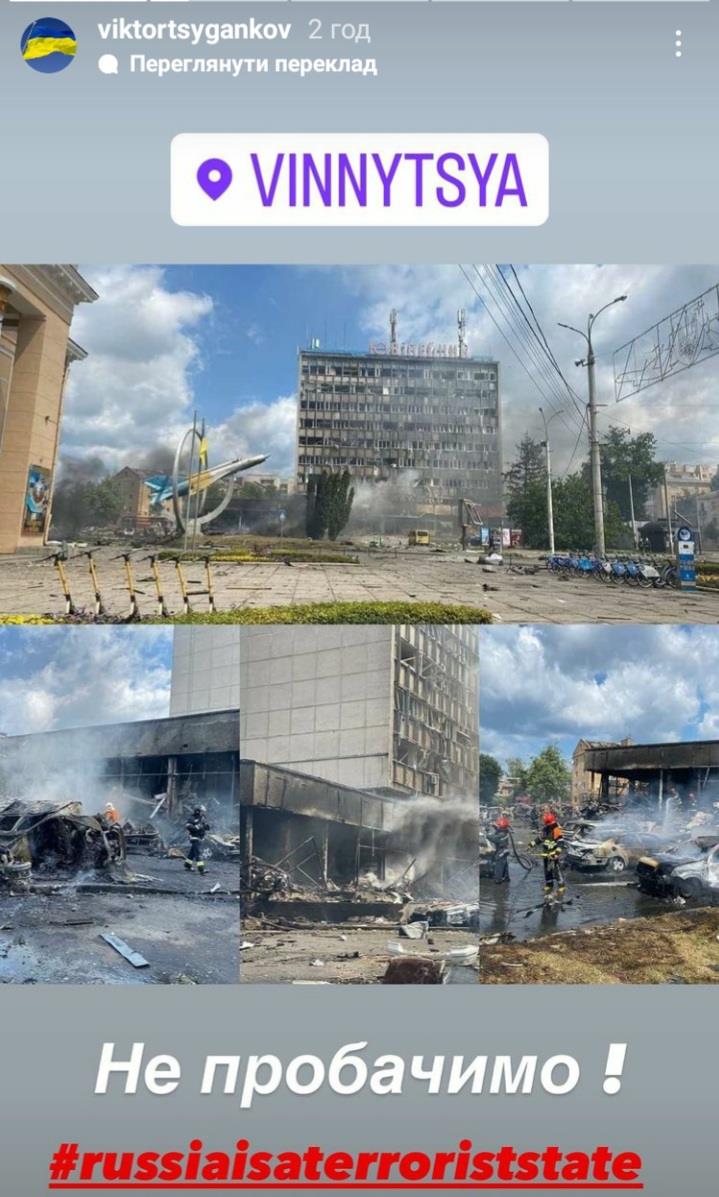 Черговий терористичний акт росіян прокоментував у своєму Інстаграмі вінгер Динамо та збірної України Віктор Циганков, який народився в Ізраїлі, проте виріс саме у Вінниці.