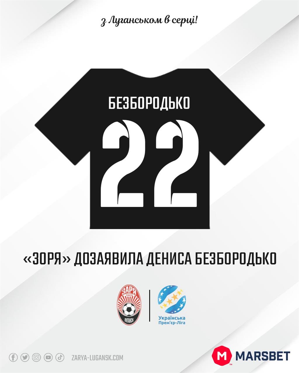 Луганська Зоря внесла до заявки на наступний сезон форварда Дениса Безбородька. Про це повідомляє сайт УПЛ.