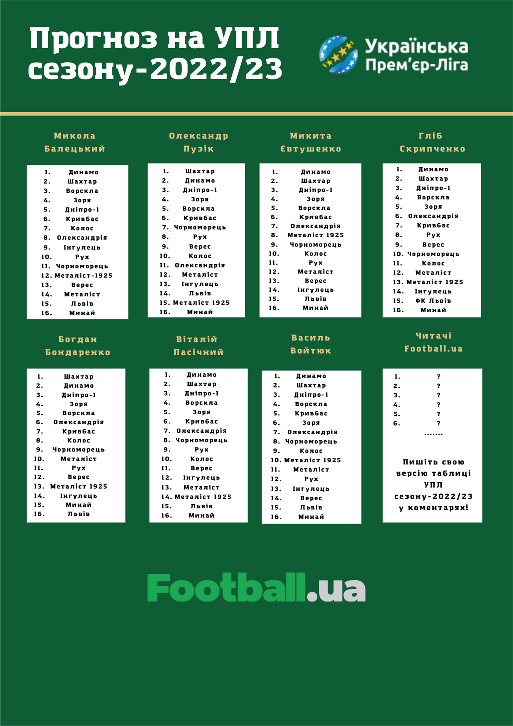 Ми зробили спробу спрогнозувати турнірну таблицю УПЛ-2022/23.