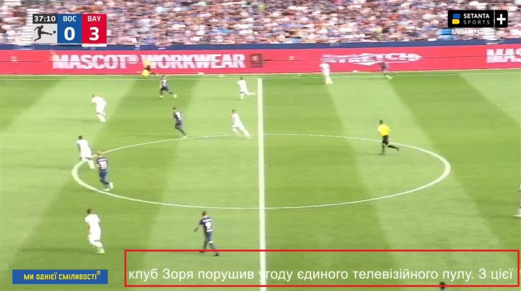 Замість трансляції поєдинку між Зорею та Ворсклою канал Setanta Sports пустив поєдинок між Бохумом та Баварією зі спеціальним титром.