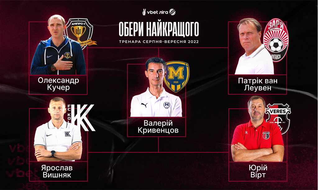 У номінацію найкращий тренер потрапили наступні кандидати: