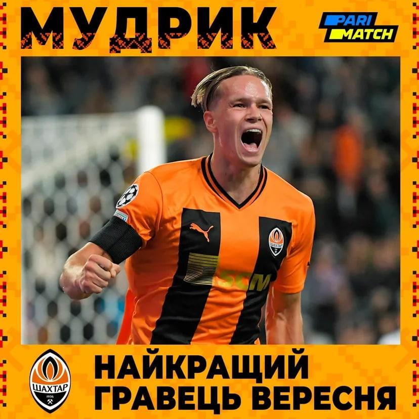 Донецький Шахтар назвав найкращого гравця у вересні. Їм став вінгер Михайло Мудрик за версією фанатів.