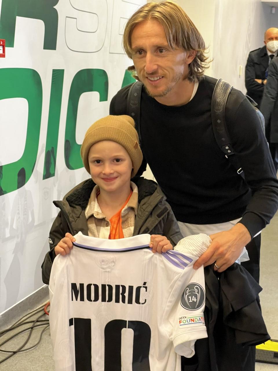 Після поєдинку хлопчик зустрівся і поспілкувався з півзахисником мадридського клубу Лукою Модричем і подарував йому браслет зі сталі, виготовленої на заводі Азовсталь.