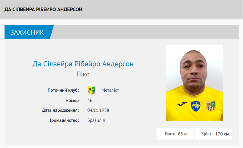 Харківський Металіст заявив на сезон української Прем'єр-ліги лівого захисника Андерсона Піко.