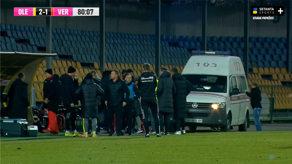 25-річному українцю знадобилася медична допомога. Гравець згодом прийшов до тями, але його забрала швидка допомога.