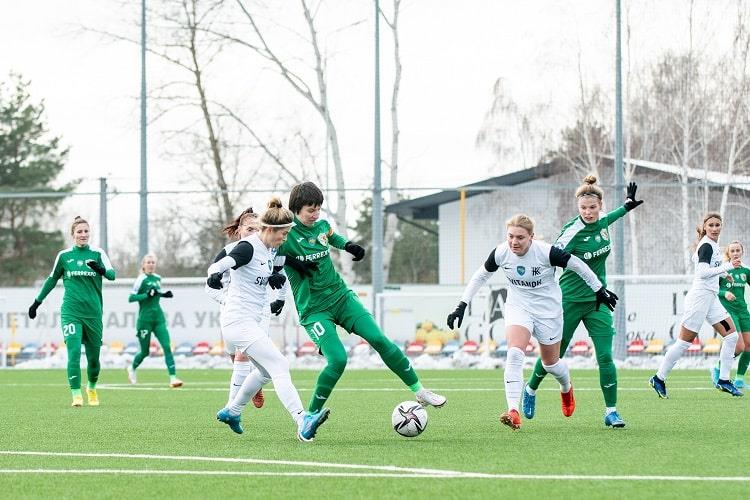Вже на другій хвилині Ворскла вийшла вперед. Яна Калініна виконала навіс з правого флангу, після чого м'яч пролетів повз всіх та влетів точно в дальній кут воріт. Потім у середині тайму Ворскла подвоїла свою перевагу зусиллями Яни Котик, яка вдало зіграла на добиванні.