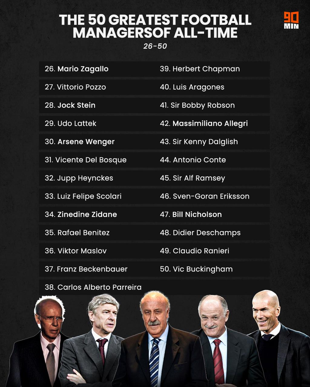 Видання 90min опублікувало свою версію найкращих тренерів світу в історії футболу.
