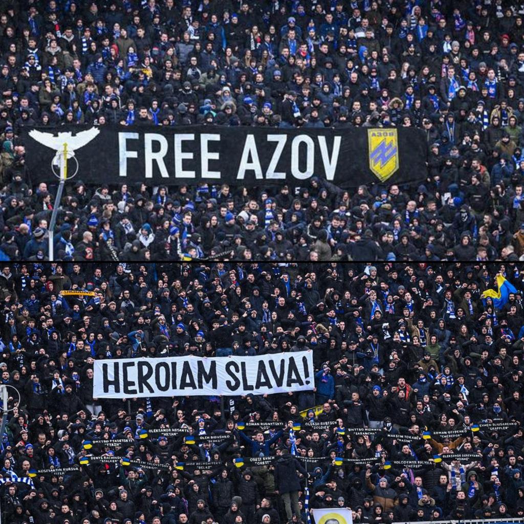 Під час матчу на трибуні загребських уболівальників був розгорнутий банер "Free Azov". У їхніх руках також знаходилися шалики, на яких виднілися імена загиблих героїв України. Крім того, на трибуні були українські прапори і надпис "Героям Слава".