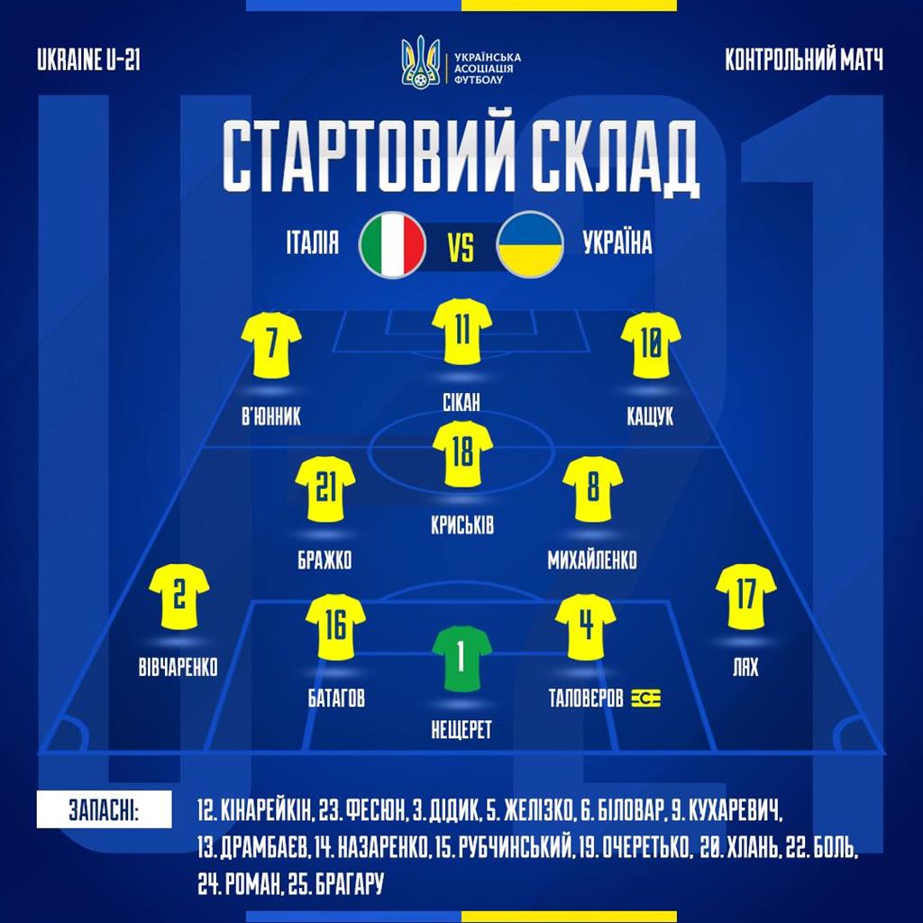 Склад збірної України U-21: Нещерет — Лях, Таловеров, Батагов, Вівчаренко — Михайленко, Бражко — Кащук, Криськів, Вьюнник — Сікан