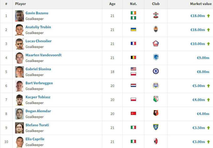 Авторитетний портал Transfermarkt випустив чергове оновлення цін на футболістів і згідно з новими показниками було сформовано рейтинг найдорожчих воротарів до 21 року.