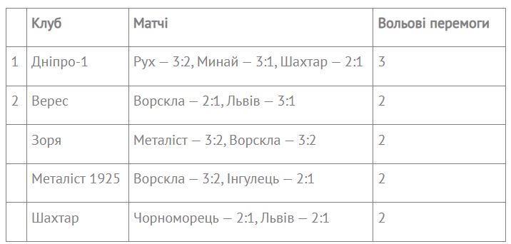 Лідер списку за показником здобутих очок на останніх хвилинах Дніпро-1 — 3 вольові перемоги. Верес, Зоря, Металіст 1925 та Шахтар мають по дві і ділять другу сходинку в імпровізованому ТОП-5.