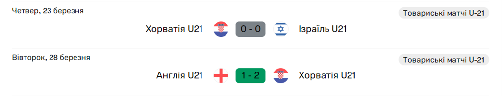 Свої останні два товариські матчі молодіжна збірна Хорватії провела ще у березні цього року. І якщо з однолітками з Ізраїлю фінальний свисток зафіксував нульову нічию, то в спарингу з однолітками з Англії "шашкових" чекав успіх у вигляді перемоги з рахунком 2:1.