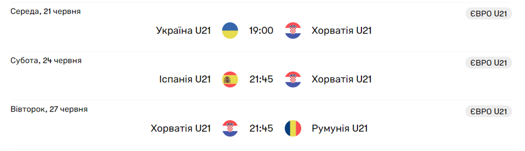 Розклад матчів Хорватії U-21 та підготовка до групового етапу ЄВРО-2023
