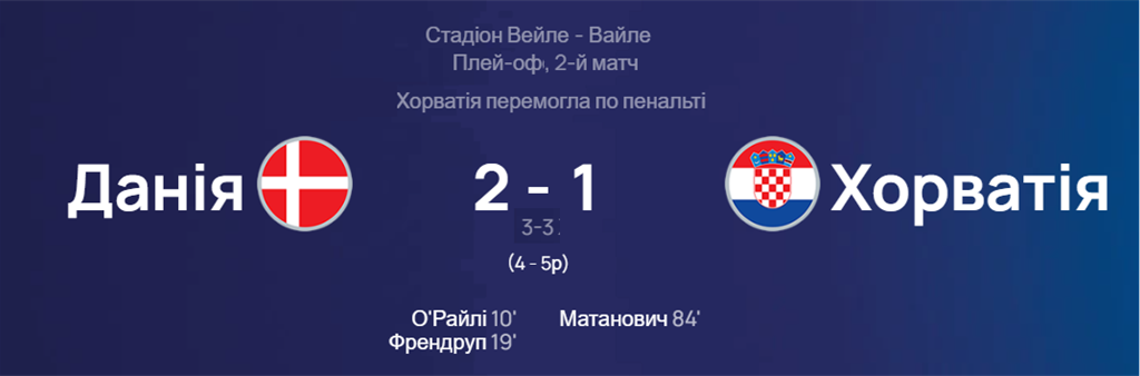 Вже в перехідних матчах збірна Хорватії U-21 обіграла однолітків із Данії за підсумками рівного двоматчевого протистояння. Обидві зустрічі завершилися з рахунком 2:1 на користь кожної з команд, а вже в серії пенальті хорвати виявилися успішнішими та пробилися у фінальний турнір молодіжного ЄВРО-2023, де вони тепер спробують перевершити своє найвище досягнення у вигляді чвертьфінальної стадії.