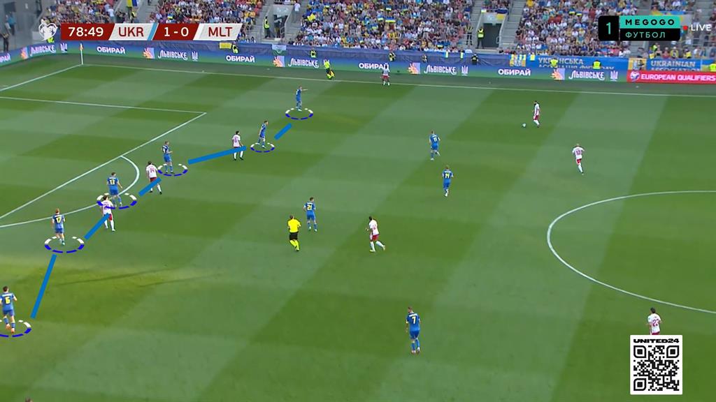 Після голу динаміка дещо знизилася. Україна більше концентрувалася на втриманні результату, хоча й не забувала вибігати у контратаки. Ситуативно команда оборонялася у шість захисників. Це спрацювало.