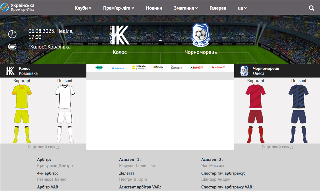 Проте інформація щодо стартових складів та запасних Колоса та Чорноморця на очний поєдинок на офіційному сайті УПЛ з'явилася лише за три хвилини до стартового свистка, майже паралельно із їхнім традиційним оголошенням під час прямої трансляції.