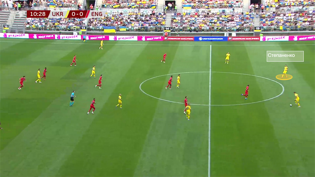 Ще однією цікавою деталлю був пресинг. Коли гравці національної збірної Англії грали назад та відходили більше до своєї половини поля нерідко Україна намагалася підійматися вище та персонально тиснути на суперників, перекривати їм лінії передач.