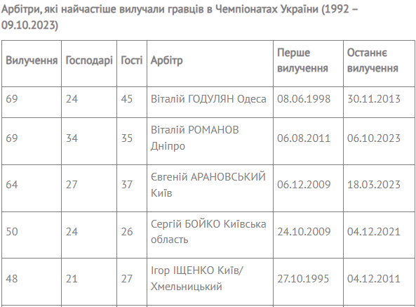 На рахунку арбітра з Дніпра вже 69 вилучень.