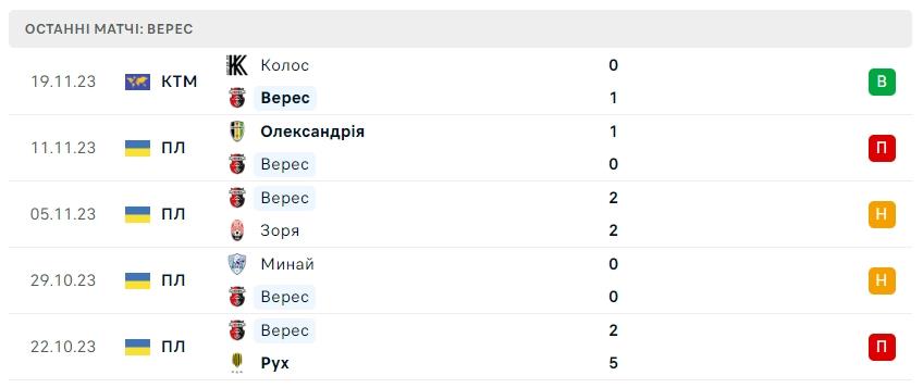 Верес на своєму полі не перемагає впродовж 3-х ігор: 2 нічиї та поразка.