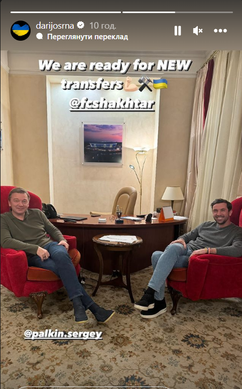 Принаймні про це свідчить пост футбольного директора "гірників" Дарійо Срна в Instagram, де він опублікував спільне фото з генеральним директором клубу Сергієм Палкіним з наступним підписом: