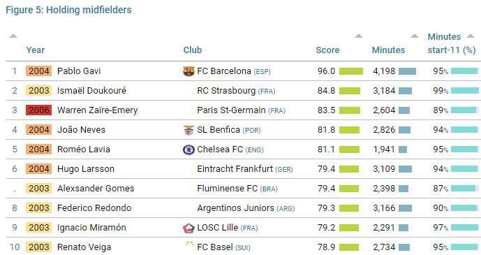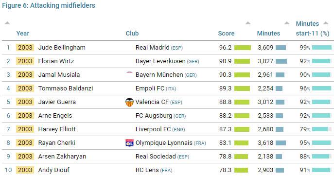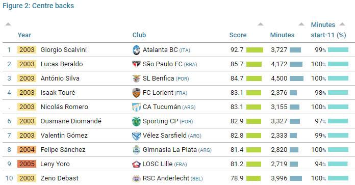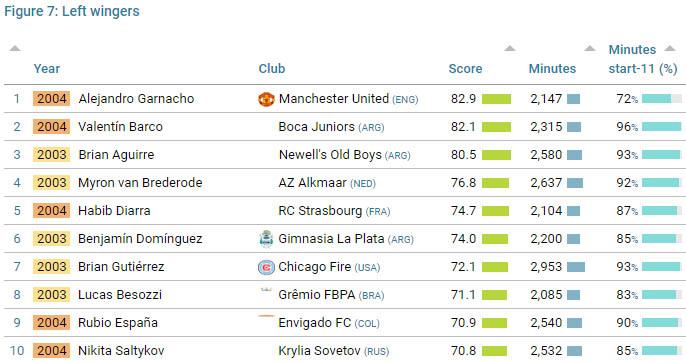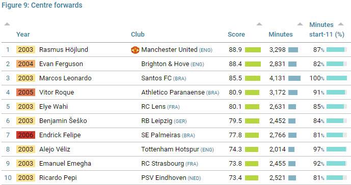 Міжнародний центр спортивних досліджень CIES опублікував список із 270 найдосвідченіших молодих гравців світу.