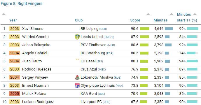 У правих вінгерах найкращим є 20-річний нідерландець Хаві Сімонс із Лейпцигу, контракт якого належить ПСЖ.